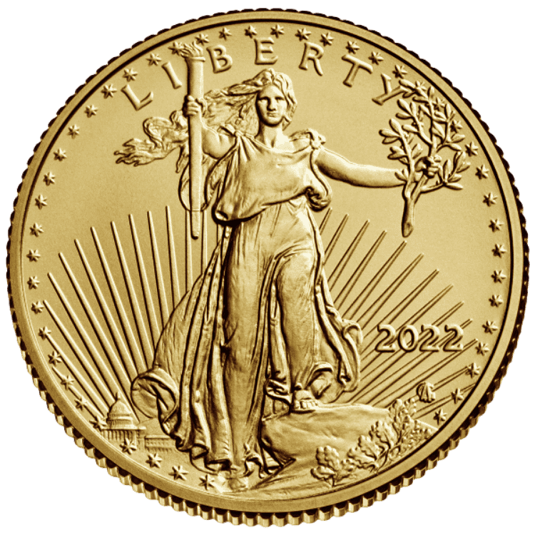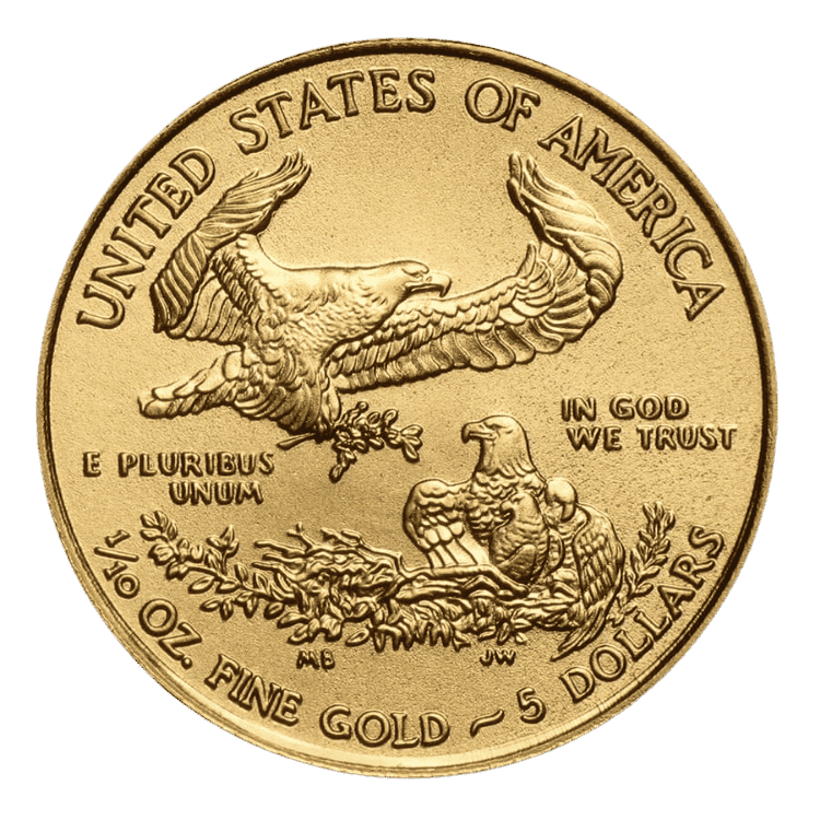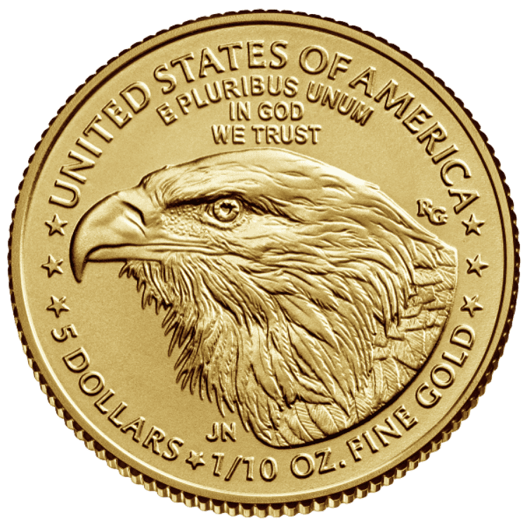 The 1/10 oz American Gold Eagle is the most affordable coin in the U.S. Mint’s gold bullion program. First released in 1986, the series quickly became one of the most trusted worldwide. Because of its small size, the 1/10 oz Gold Eagle is a popular choice for new investors and gift buyers.