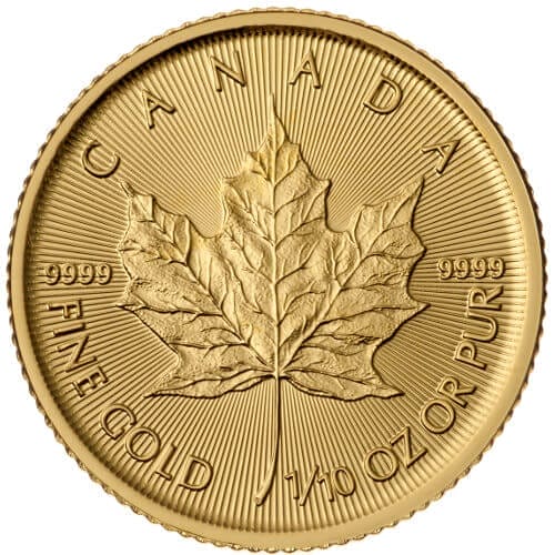 The 1/10 oz Canadian Gold Maple Leaf is one of the most affordable ways to own gold. First released in 1982, the Gold Maple Leaf series set the global standard for .9999 fine gold. Because of its fractional size, this coin gives investors a low-cost entry point into gold ownership.
