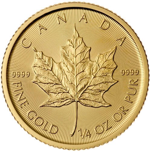 The 1/4 oz Canadian Gold Maple Leaf is a trusted fractional bullion coin from the Royal Canadian Mint. Each contains 1/4 troy ounce of .9999 fine gold. Buy at Veldt with Bitcoin, Monero, Ethereum, and more. Fast, secure shipping included.