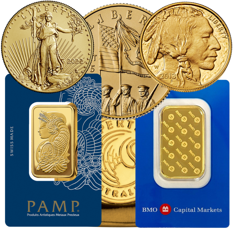 The 1 oz generic gold option offers investors the lowest premiums over spot price. Each item contains 1 troy ounce of investment-grade gold, either .999 or .9999 fine. Because selection depends on availability, customers may receive either gold bars or coins.
