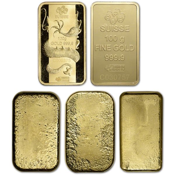 Each bar contains 100 grams (3.215 troy ounces) of .9999 fine gold. All bars are sourced from trusted LBMA-approved refiners such as Valcambi, PAMP Suisse, and Credit Suisse. Every piece comes sealed in tamper-evident assay packaging that confirms both weight and purity. A unique serial number provides added verification.