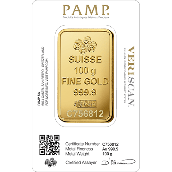 The 100 Gram PAMP Suisse Fortuna Gold Bar is a world-class bullion product from Switzerland. Each bar contains 100 grams (3.215 troy ounces) of .9999 fine gold and comes sealed in assay packaging. Buy at Veldt with Bitcoin, Monero, Ethereum, and more. Fast, secure shipping included.
