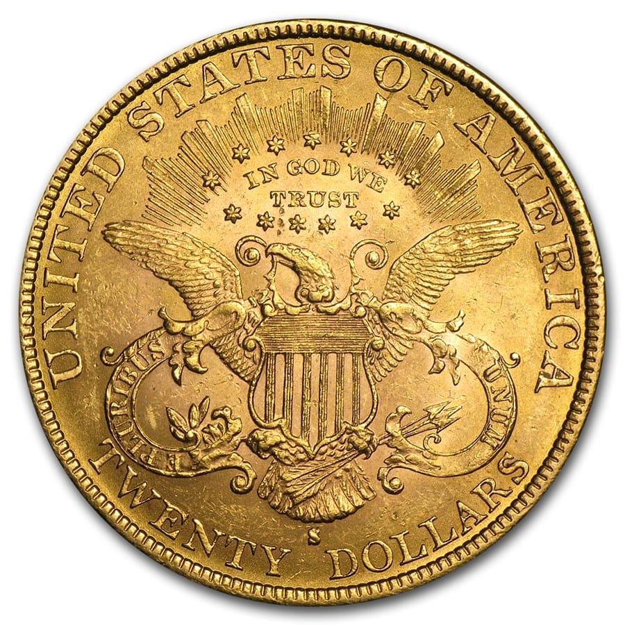 The $20 Liberty Gold Double Eagle is one of America’s most iconic historic gold coins. First struck in 1849, it was produced until 1907 by the United States Mint. Each coin contains .9675 troy ounces of gold with a fineness of .900, balanced with copper for added durability.