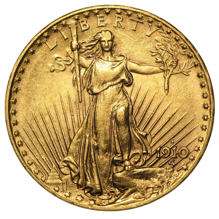 The $20 Saint-Gaudens Gold Double Eagle is admired as the most artistic U.S. gold coin. First issued in 1907, it replaced the Liberty Head Double Eagle. The coin remained in production until 1933. Each contains .9675 troy ounces of gold with .900 fineness. Because of its beauty and history, it is one of the most collected American coins today.