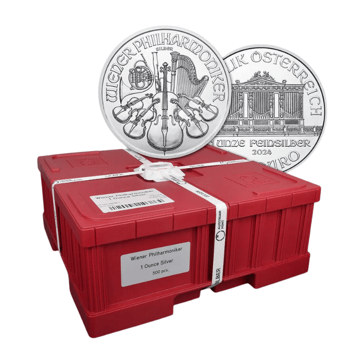 The Austrian Silver Philharmonic Monster Box is a premier option for bulk silver investors. Each box includes 500 coins, sealed by the Austrian Mint in its official packaging. Because of its size and recognition, it is a cost-effective way to secure large amounts of silver.